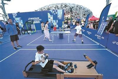 国度领路场鸟巢所在的奥林匹克中心区,早已是商户和糜费者的爱好之地。8月7日恰逢第17个“全民健身日”前夜,以“AI尚体育悦动一夏”为主题的第十六届北京奥运城市体育文化节暨第六届“8·8”北京体育糜费节在这里举办。嘉年华为期四天,举办了17项体育赛事和举止,波及专科竞技、文化饰演、互动体验等多个方面。市民不仅能体验数智铁三、电子竞技自行车、AI网球学练等立异项目,还能参与“群众领路汇”全民健躯壳验举止。跨越80家商户积极参与,涵盖了体育科技、户外用品、体育旅游、体育领路康复、体育作事、文创居品、营业百货、金融作事等多个领域。