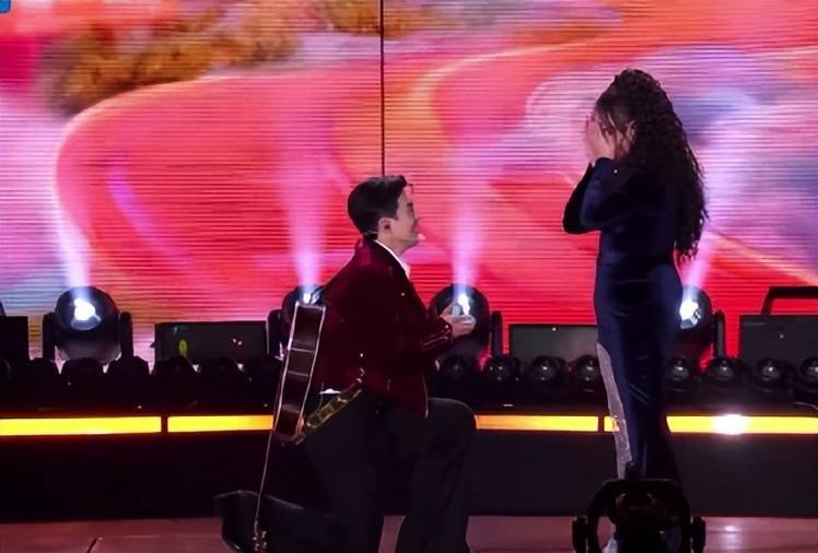 但通盘这一切,都比不上一场不测,李川在与锤娜丽莎齐唱歌曲《我的心里唯有你莫得他》后蓦地单膝跪地,手持适度向锤娜丽莎求婚。