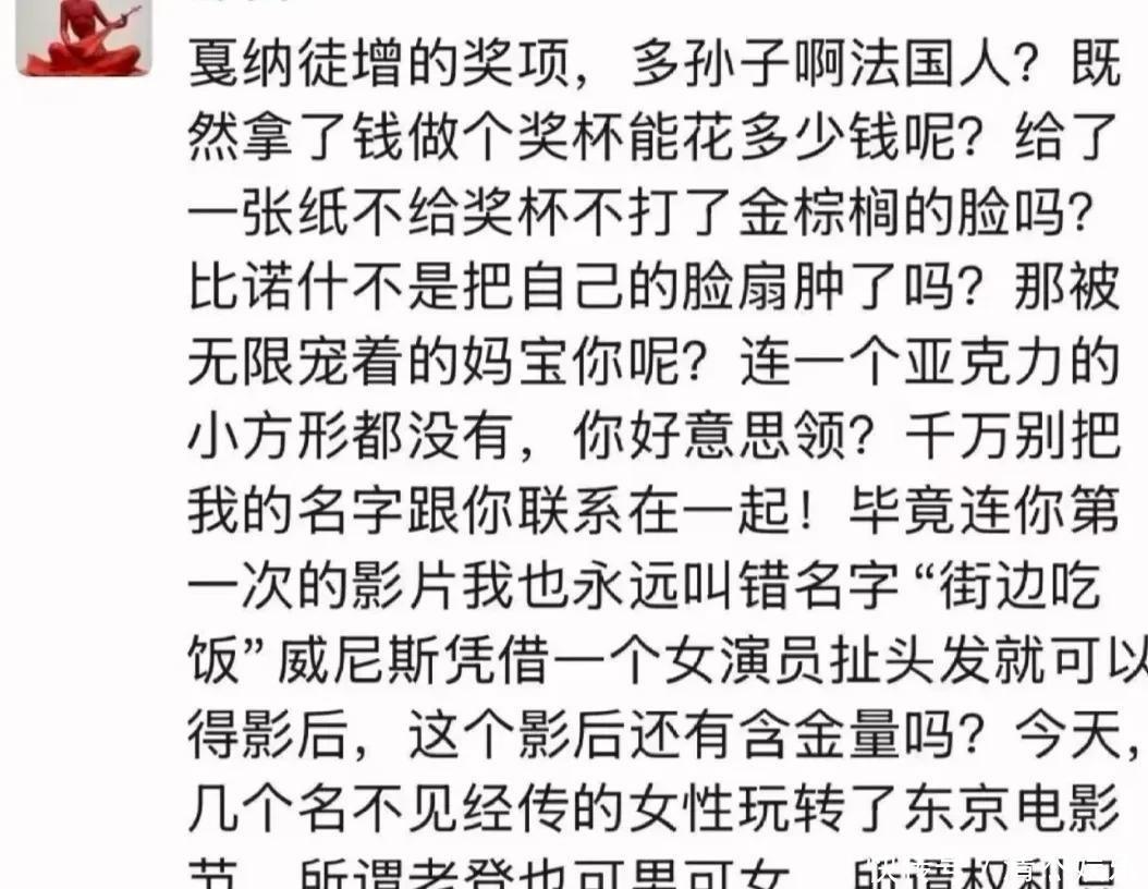 她话语挺直白的,说咫尺很多电影节的奖项齐不咋值钱,有的靠砸钱就能拿,还有东谈主扯皮打架就混上了威尼斯电影节的最好女主角。