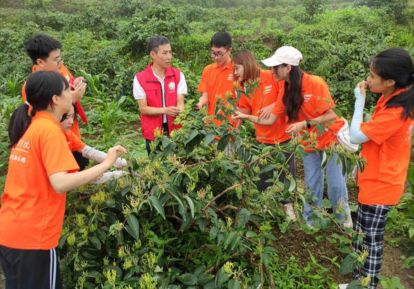 学院造就吴中军指导学生参与武隆区金银花采摘践诺手脚。重庆文理学院供图