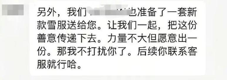 11月23日,滑雪服品牌细密东谈主孟女士暗示,该品牌创立四年来,已更换三批不同的公益寻亲吊牌,邓女士购买的衣裳系第二批吊牌,现在已施舍她一套全新的滑雪服和帽子行为报恩。