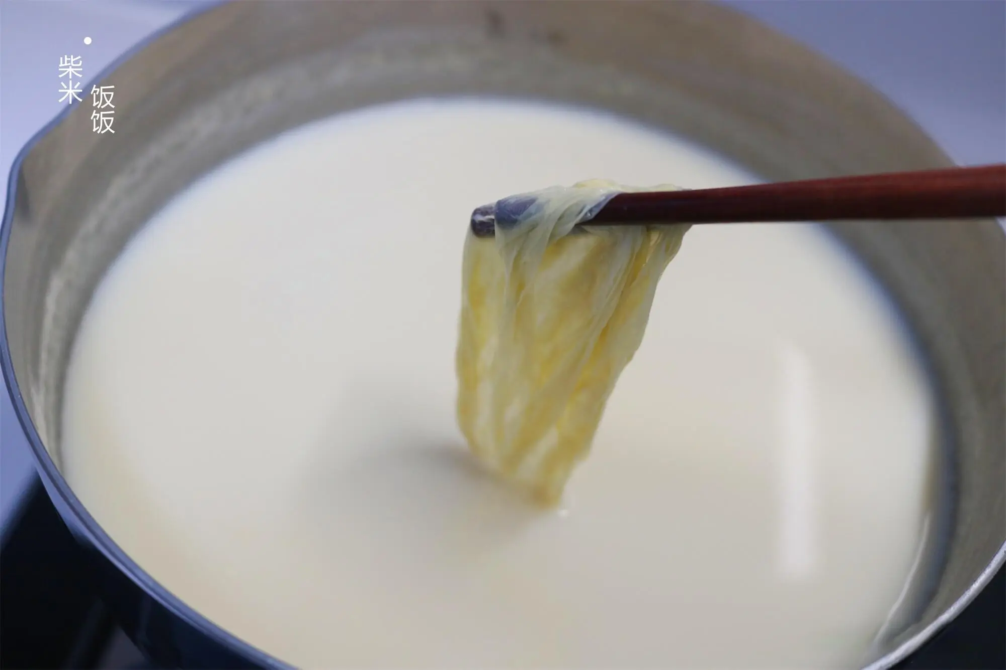 7,煮好的豆乳等几分钟名义会有一层油皮,把油皮揭掉。