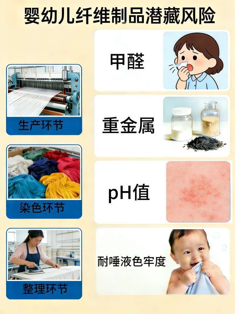 婴幼儿纤维成品在坐褥、染色、整理等体式,皆可能带入无益物资,给孩子健康带来潜在挟制。